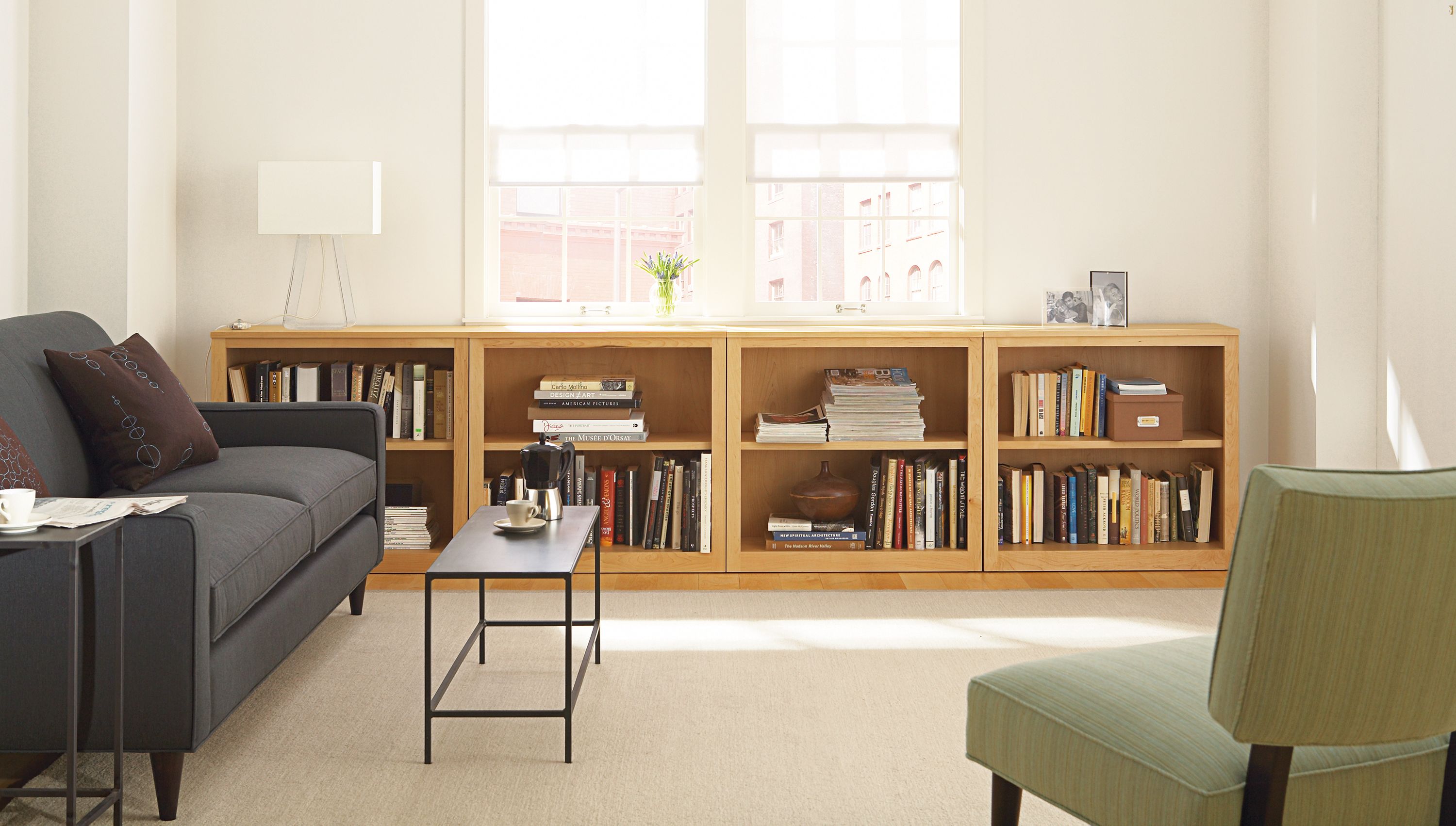 Trending Room And Board Woodwind Bookcase Two portica desks, a shelf, and a large bookcase. Room And Board Woodwind Bookcase : Mesmerizing living room set up office.